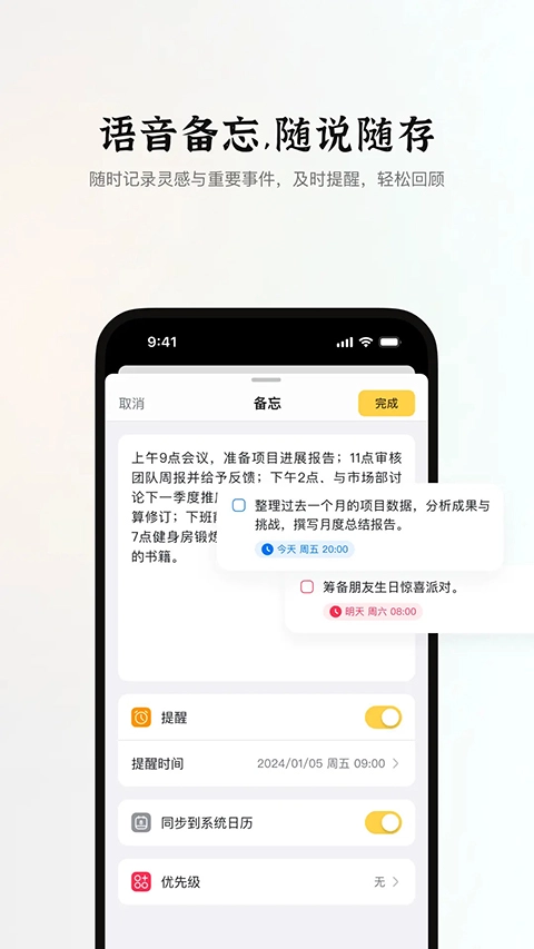 实时同步各种会议音频和记录内容,手机/电脑等多平台管理文件