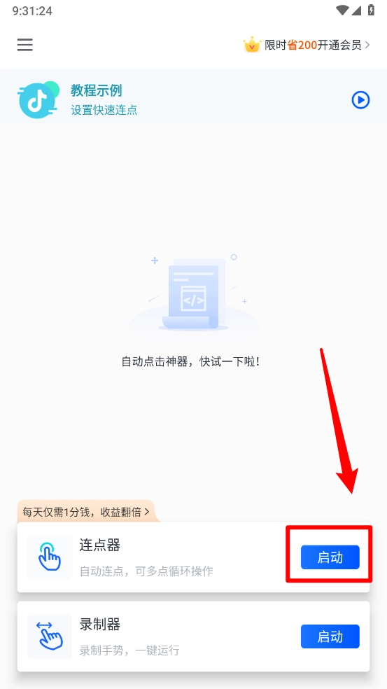 4、回到主页,打开连点器的开关,选择新增点击模式,设置好相应参数后,就能启动点击操作了。