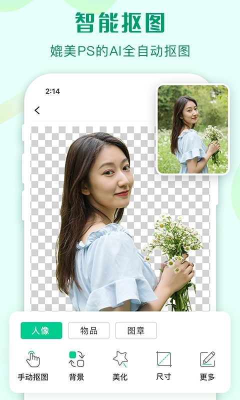 1、操作便捷性领先:相较于PS这类专业工具,无需进行复杂的学习,即便是0基础的用户也能迅速上手,通过手机端就能达成专业级别的抠图效果。