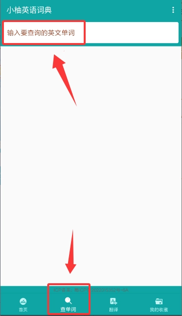 2、首页选择查单词功能进入查询页面。