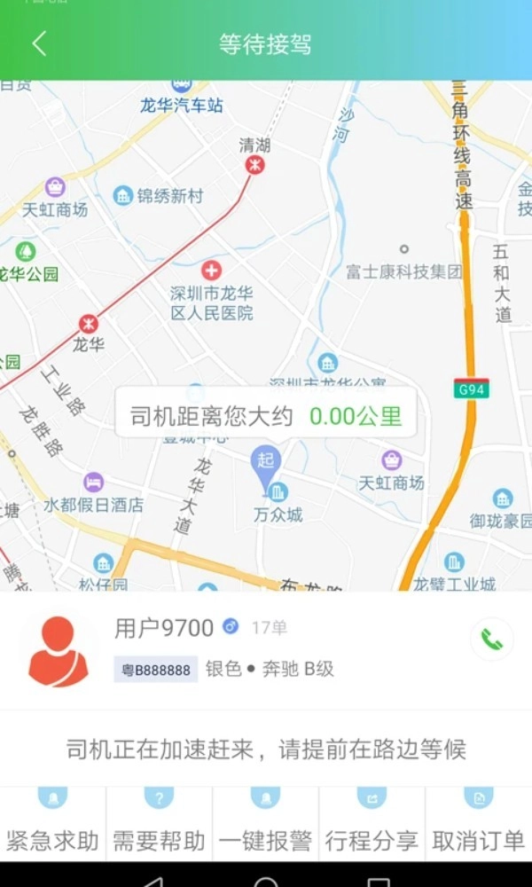3、安全守护:行程期间开启全程录音监控,设有紧急求救按钮,行车轨迹能够实时同步给紧急联系人。