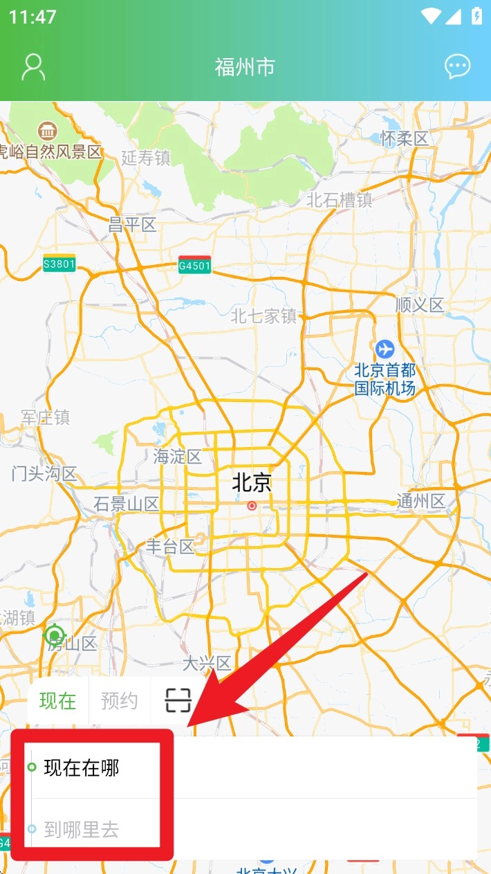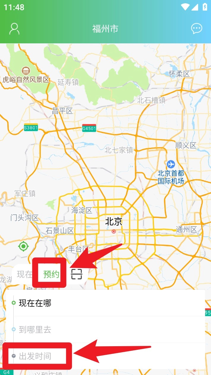 3. 若需预约用车,可切换为预约模式,并选择计划的出发时间与地址信息。