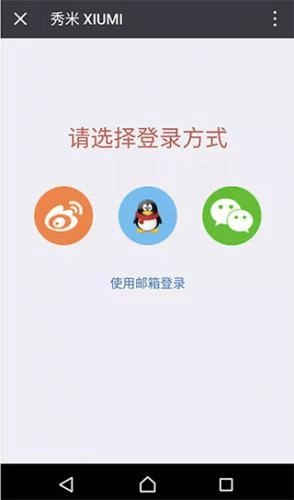 1、再本站打开软件,如果你已有一个秀米账号,且之前没有登录过手机版,就会显示登录页面,可以用微博/QQ/微信/邮箱登录;