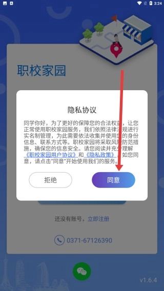 1、在进入到职校家园后,可以点击弹窗中的同意按钮进入使用。