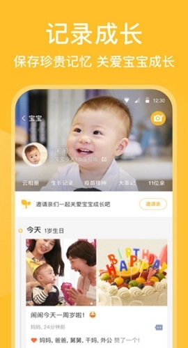 无论是照片、视频还是录音,都可以随心记录;宝宝成长中的每一处细微变化,我们都会用心为你妥善留存。