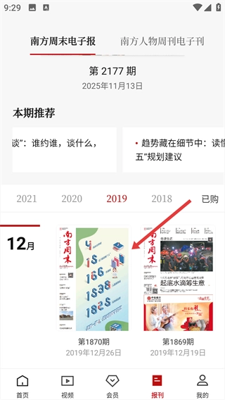 进入报刊页面后,可滑动【2025】【2024】等年份选择栏,挑选想要查看的年份。