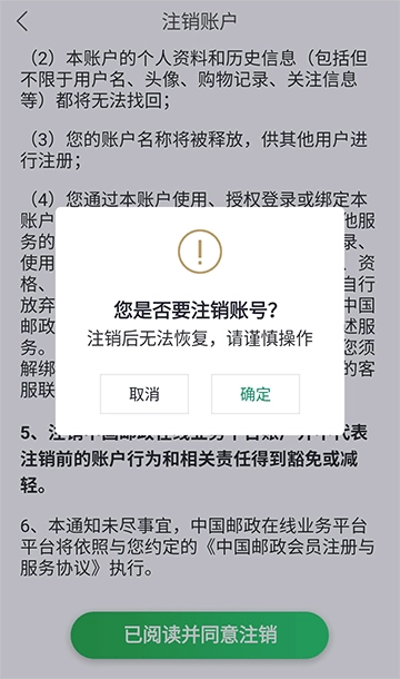 中国邮政怎么注销账号