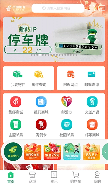中国邮政作为整合了快递服务与商城功能的综合性应用,用户既能一键完成包裹的寄递与查询,也可随时选购邮票、报刊图书、邮政农品、明信片及周边文创等各类商品,操作便捷高效。此外,用户在选购商品之余,还能通过平台浏览邮政发布的资讯,及时了解邮政的最新动态。