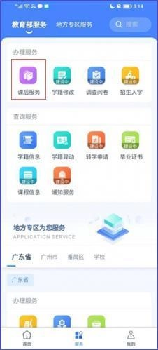 1、打开学有优教,进入课后服务 先打开学有优教应用,在登录界面输入相应的账号和密码完成登录。登录后,在页面底部找到并切换到【服务】板块,家长接着在该板块的【办理服务】选项里,点击【课后服务】,即可进入课后服务页面。