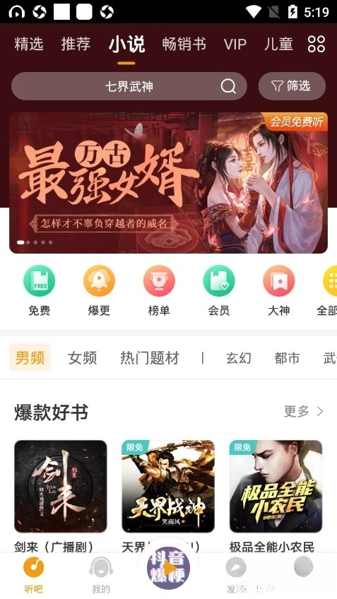 《懒人畅听》是一款融合了酷我畅听与懒人听书两大平台优势的二合一软件,为用户打造了一个集听书、听歌于一体的多功能应用。平台汇聚了海量热门作品,用户可免费畅听;此外还贴心配备了阅读功能——毕竟长时间听音频容易让耳朵疲劳,切换成阅读模式放松一下也是不错的选择!