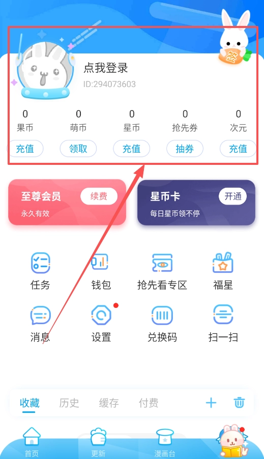 1、首先呢,打开后点击底部"我的"进入个人中心,找到"点我登录"按钮,还能进行充值或开通至尊会员等操作。