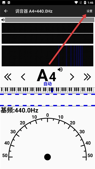 2、进入调音器界面后,点击右上角的【设置】按钮,即可进入参数设置页面,通过调整调音相关参数来满足不同的使用需求。