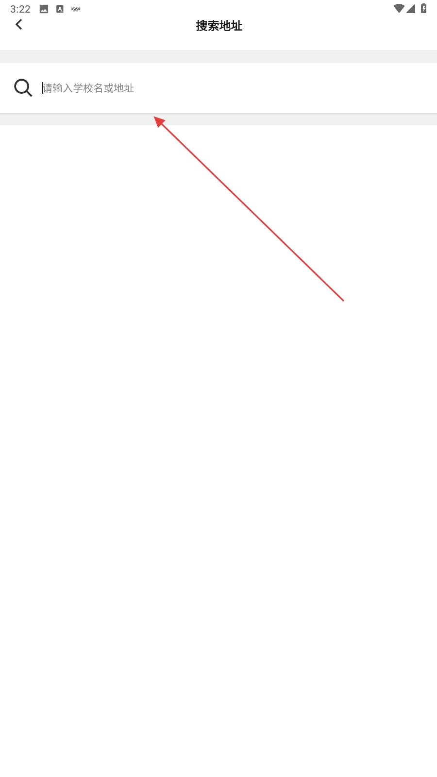 3、在搜索地址页面的输入框,输入学校名或地址进行搜索。