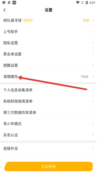 3、在设置界面中,找到【清理缓存】选项,点击该选项准备清理。