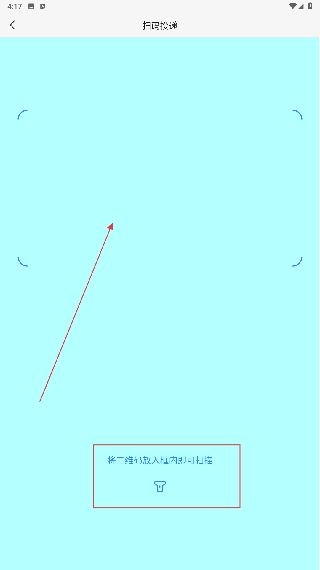 4、进入扫码投递页,将快件二维码放入扫描框内,完成扫码操作。