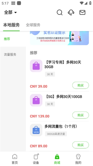 随时在线,畅行无阻!我们新推出了“套餐”页面,使流量包购买更便捷。同时,还新增了适用于5G设备的移动流量,让您出行无后顾之忧。