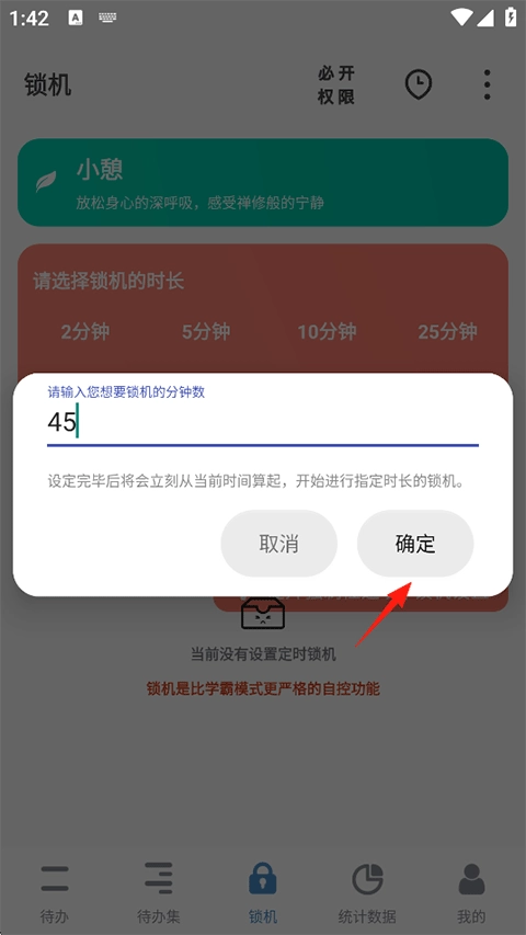 4、回到锁机页面,您还可以添加自定义锁机时间段;