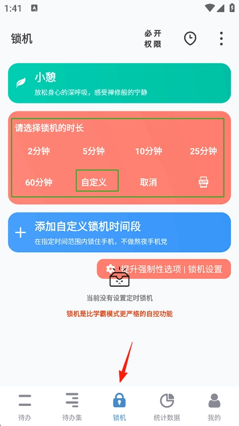 1、打开番茄ToDo,点击锁机-自定义锁机时长;