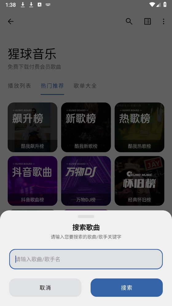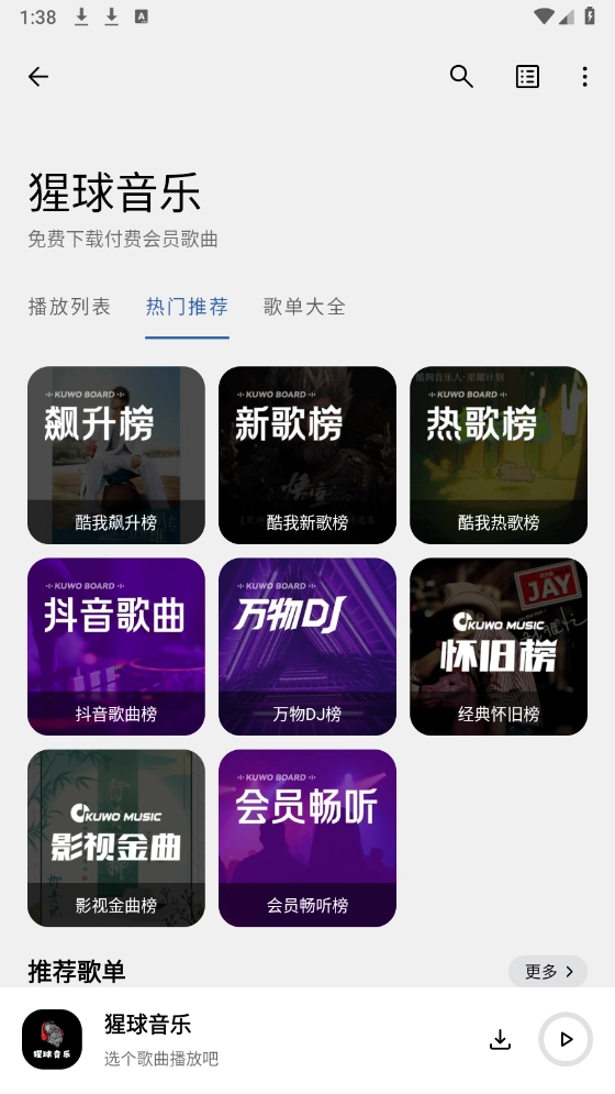 进入首页后,能看到种类丰富的音乐资源分类,像抖音歌曲、新歌榜和热歌榜都包含在内。