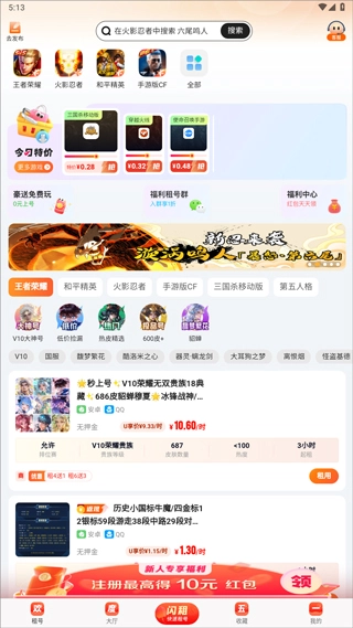 2、它有一个特别优惠的账户租赁部分,你可以以最低的价格租用各种高质量的游戏账户,既省钱又省心。