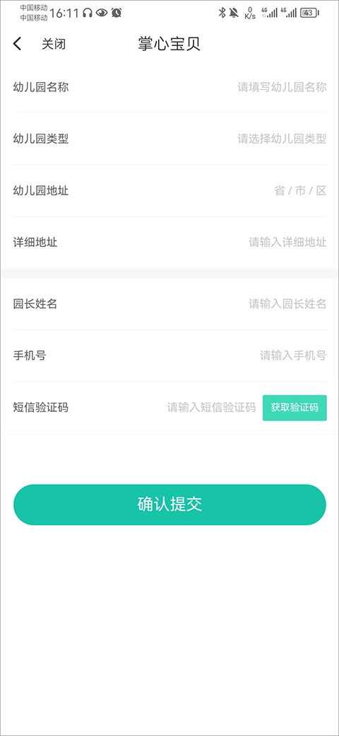2、进入后将幼儿园注册信息填写完成后点击确认提交