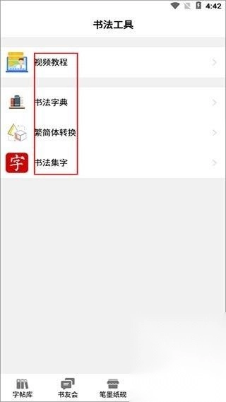 5、在书法工具中可观看教学视频,并使用字典查询相关书法信息;