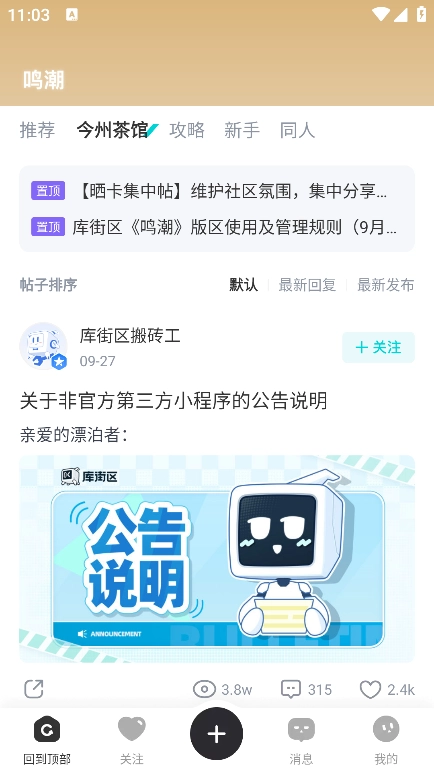 库街区是库洛游戏精心打造的综合性社区平台,这里汇集了海量游戏资讯与攻略,还融入了社交功能。玩家不仅能及时了解最新游戏动态、积极参与各类活动,还能和兴趣相投的伙伴交流心得、分享游戏的快乐。此外,平台提供的一键领取礼包、精准分析战绩数据等特色功能,让它成为了游戏爱好者互动交流的好去处,十分值得体验。
