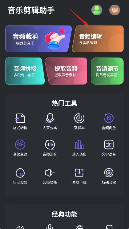 2、然后打开应用,在主界面中选择【音频剪编辑】功能。