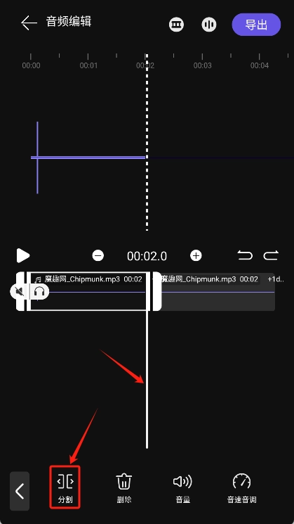 4、随即通过拖动进度条并点击“分割”来剪切选择需要的音频部分。