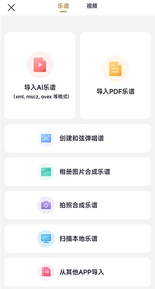 6. 点击界面中间的加号,我们可以导入本地的乐谱和练习视频。