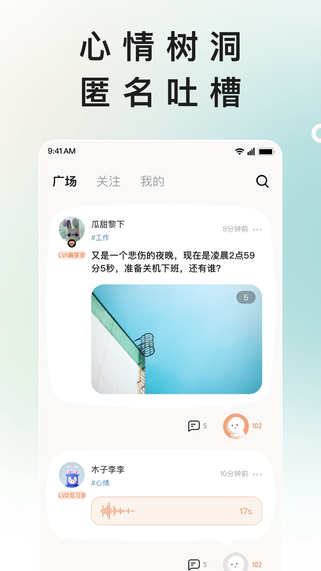 3、匿名吐槽:匿名树洞,想说就说。还可支持语音噢