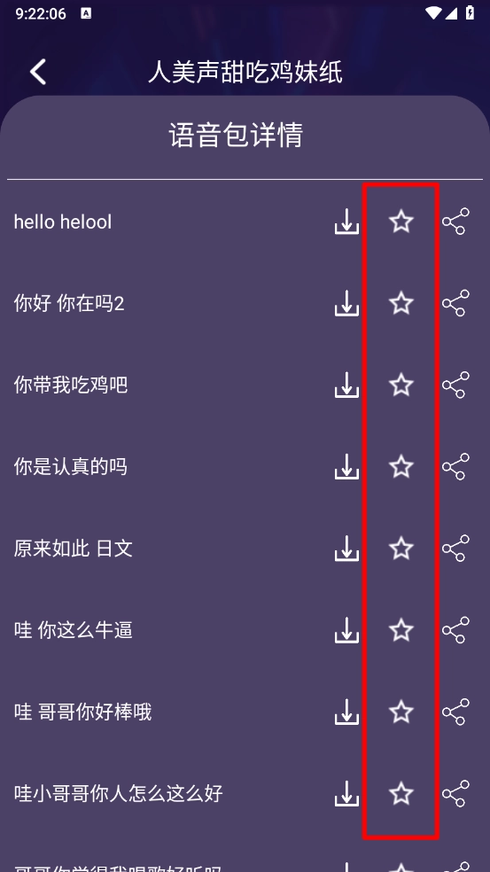 2、进入语音包详情页面,依据自身需求选择对应的语音并点亮星图标,具体操作可参照图示。