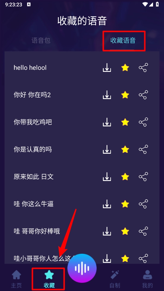 3、回到主页后,切换到“收藏”板块,就能查看已收藏的语音了。
