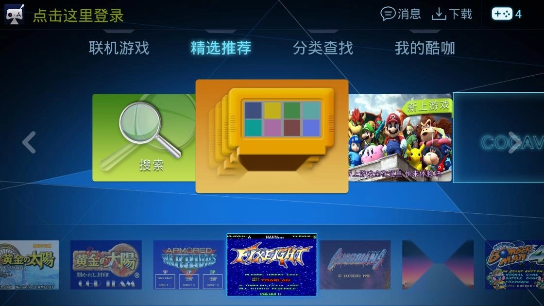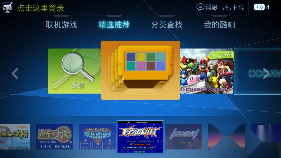 酷咖游戏TV版是一款专为电视打造的优质游戏盒子应用,能让用户在大屏上畅快游玩各类游戏。这款应用了丰富的游戏资源,涵盖PS、FC等不同类型的经典街机游戏,同时支持直接连接游戏手柄,助力玩家获得更沉浸、更优质的大屏游戏体验。