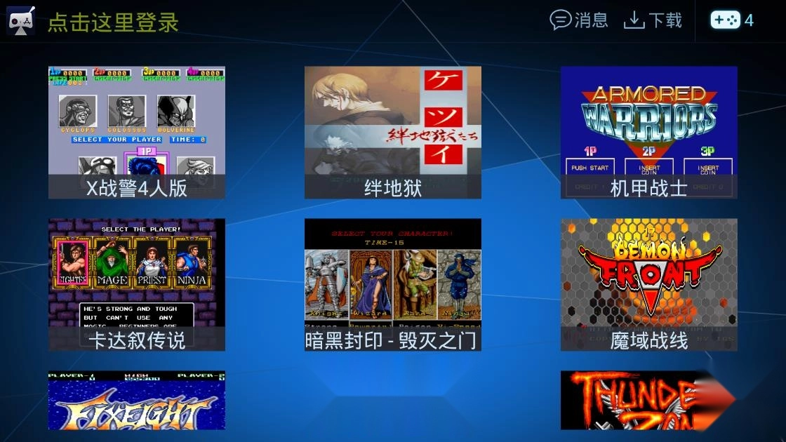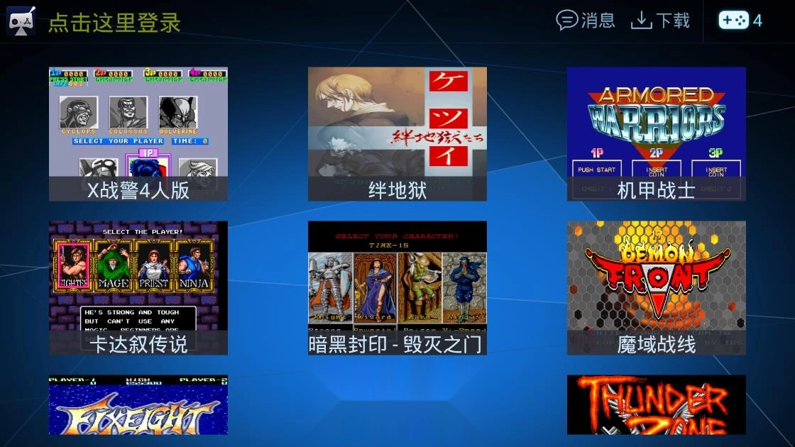 提供众多游戏,包括经典FC、MD、GBA、ARCADE等。
