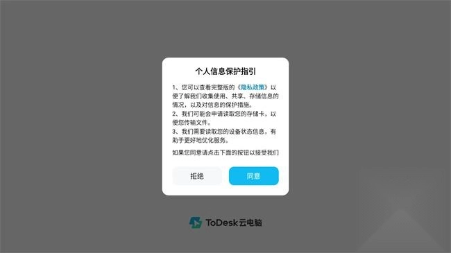 2. 安装完成后,请注意权限提醒,并进入ToDesk云电脑软件。