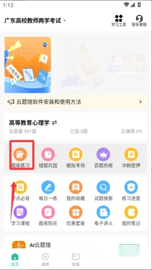 1、打开云题馆题库软件,选择需要的考试类别,进入历年真题模块开始刷题练习。