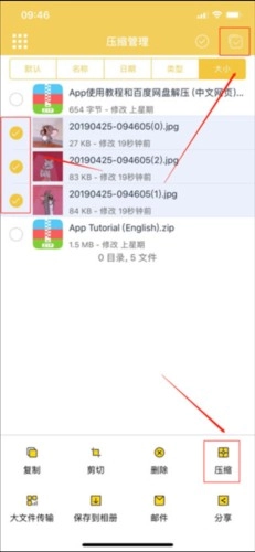 5、点击右上角压缩文件的选中按钮,把上传的所有需要打包的照片都选中,然后点击“压缩”,具体操作可参照下图。