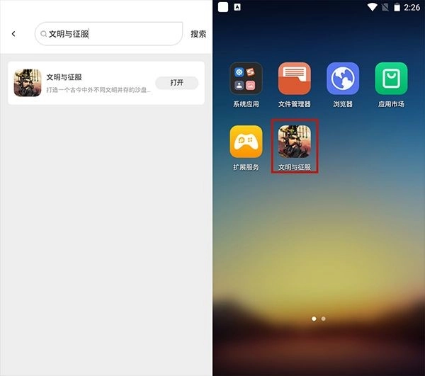 3、小编以《文明与征服》为例,你可以选择设备进入后找到应用市场,搜索“文明与征服”;