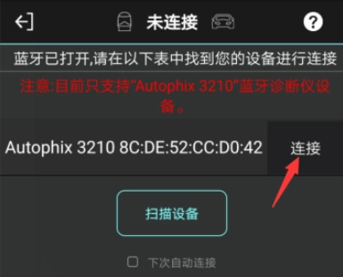 注意:目前仅支持"Autophix 3210"蓝牙诊断仪设备。