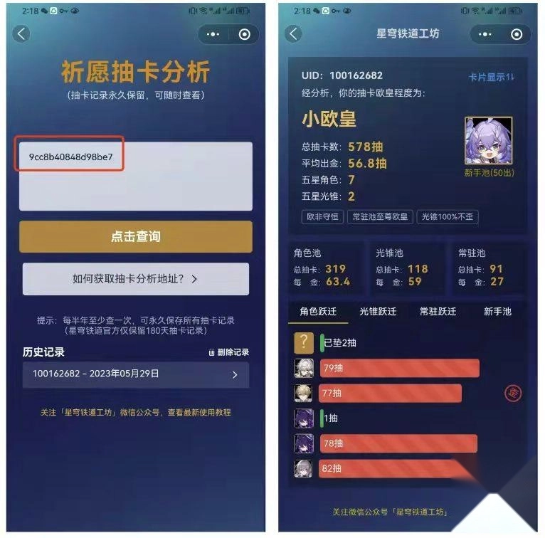 3.复制分析码/分析链接到文本框,就能开始抽卡分析了
