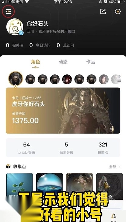 1. 首先,掌上命运方舟,进入我的界面后,点击左上角。