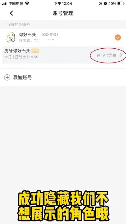 5. 最后,选择您想要隐藏的角色,并按照图中的流程进行操作即可。