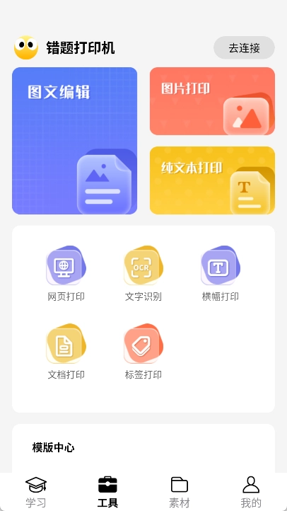 叮当同学是一款专门面向学生群体开发的智能错题打印工具类软件,它支持通过蓝牙与打印机建立连接,帮助学生快速打印错题并整理成错题本,有效省去了手抄错题的麻烦,显著提高了学习效率。另外,安卓版本的叮当同学还具备拍照搜题、文字识别、文档打印等丰富多样的功能,能够全方位满足学生在学习过程中的各类需求,是助力学生提升学习成绩的实用辅助工具。