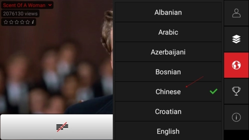 3、在列表中找到“Chinese”,选择后即可将语言设置为中文。
