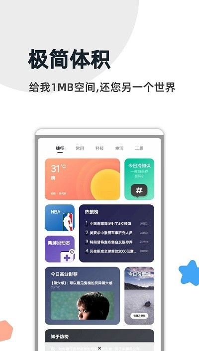 - 极简体积:仅需1MB空间,为您打开全新世界。