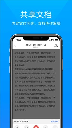 3、用户能够把该视频应用的显示屏共享至多个应用程序里,当用户访问此内容后,参与者就能实时查看会议内容;