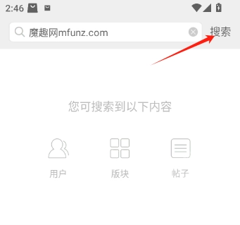 2.然后输入想搜的内容,即可搜索到用户、版块以及帖子。