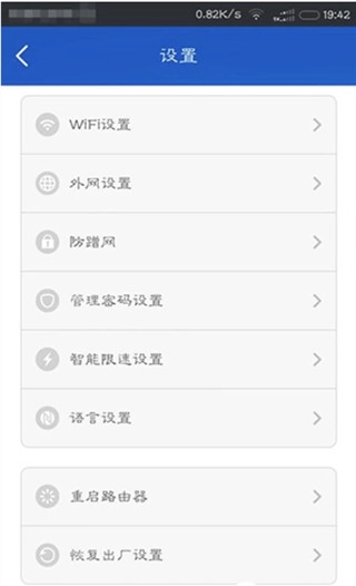 5、高级设置中的第一项是无线网密码修改,第二项为外网连接方式修改,第三项包含防蹭网机制与勿扰模式,第四项是管理密码修改,第五项可对接入设备进行限速设置,第六项为语言设置。