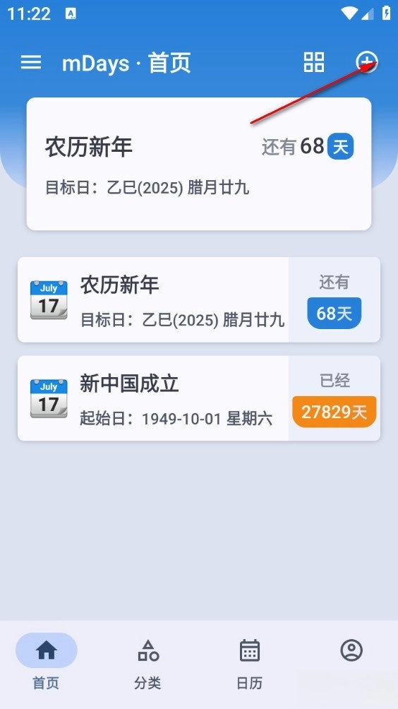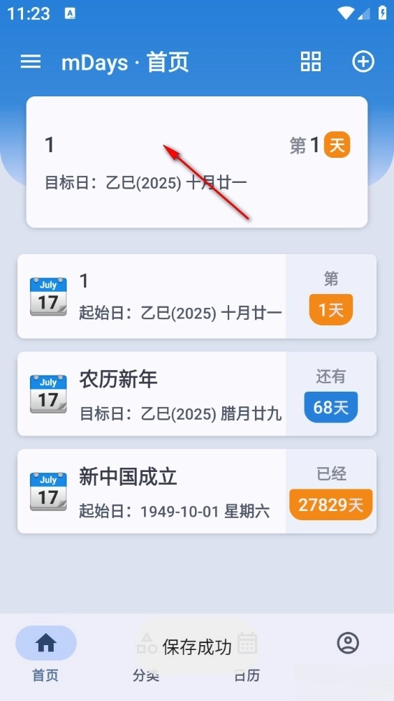 【默认分类】里默认有生日本、生活、工作和学习这四个倒数本,还能自定义添加更多分类。